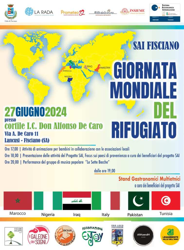 Il 27 giugno 2024, presso il SAI di Fisciano, il mondo delle associazioni si è riunita per celebrare la Giornata Mondiale del Rifugiato, un evento di importanza internazionale che ha l’obiettivo di sensibilizzare l’opinione pubblica sulla condizione dei rifugiati e promuovere il rispetto dei loro diritti. A rendere ancora più significativa questa giornata è stata la partecipazione attiva della Pro Loco Fiscianese, un’associazione da sempre impegnata nella valorizzazione del territorio e nella promozione di eventi culturali e sociali.