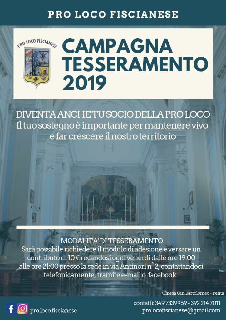 Periodo: (5-05-2019 Bolano e Lancusi/ 19-05-2019 Fisciano/ 26-05-2019 Nocelleto/ 2-06 Penta /16-06 Soccorso/ 23-06 Pizzolano/ 30-06 Carpineto e Settefichi)
