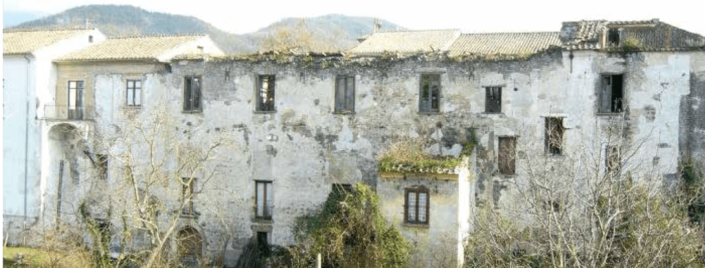Il complesso religioso era la sede del monastero di Sant’Andrea (966) poi divenuto dei padri Verginiani di Montevergine (1293) e agli inizi dell’ottocento si trasforma in residenza signorile. La pianta del monastero si discosta da quella classica per la presenza di un corpo di fabbrica aggettante che rompe la regolarità e la simmetria tipica della maggior parte di queste costruzioni. I prospetti delle parti del monastero che affacciano sul chiostro non presentano differenze sostanziali: in tutti e quattro i lati il portico, ad archi a tutto sesto, si articola con massicci pilastri quadrangolari, su cui scaricano una serie di volte a crociera che costituiscono il solaio di calpestio del piano sovrastante, aperte sul chiostro con finestre, in parte murate. L’elemento fondamentale per la completa fruizione dello spazio di questa imponente struttura, era il giardino.
