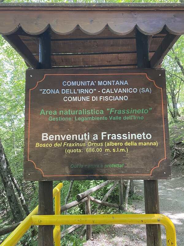 L’area naturalistica “Frassineto” si estende su una superficie di 81,25 ettari, è ricoperta interamente da bosco ceduo avviato ad alto fusto. L’area ricade nella zona di riserva generale e protezione del Parco Regionale dei Monti Picentini, dista circa 15 km da Salerno, presenta un’altitudine media di 650 mt s.l.m. ed è compresa tra una zona boschiva detta “Acqua dei faggi” e quella detta “Costa della traversa”, sulla pendice occidentale dei Monti Picentini. Il bosco è caratterizzato da terreno di natura autoctona, compatto tendente all’argilloso su struttura calcarea-dolomitica micro-fratturata che caratterizza tutti il versante dei Monti Picentini. Le vette prospicienti l’Area sono: Pizzo San Michele (1567 mt), Tuppo dell’Uovo (1525 mt), Monti Mai (1607mt), Serre del torrione (1415 mt) e Varco della Colla (1062 mt). L’area Frassineto è percorsa da quattro sentieri (F1-F2-F3-F4) e al suo interno sono presenti spazi attrezzati ed aree per la sosta e punti di osservazione della natura, con tavoli e panche in legno.